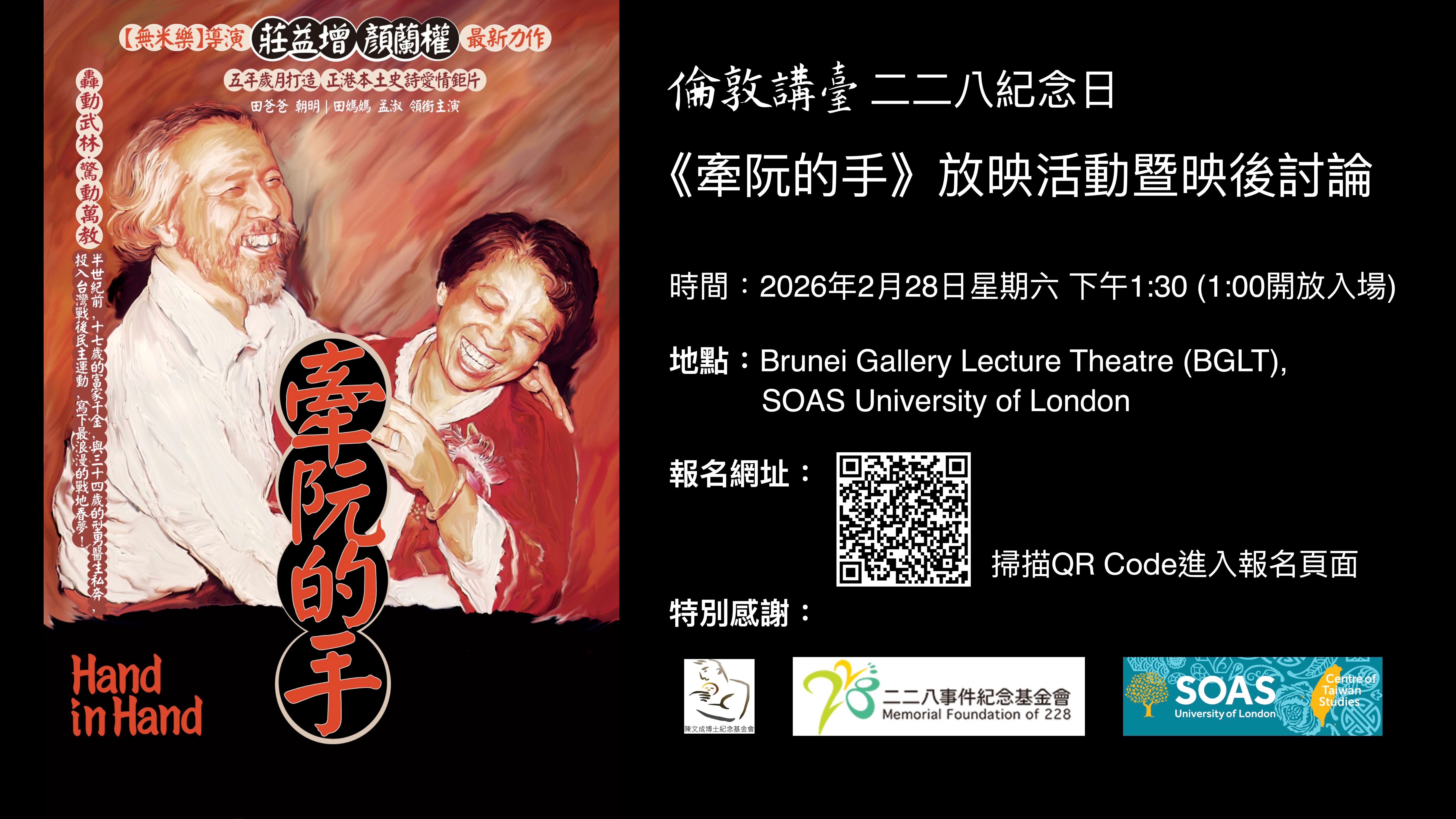 本次放映為免費活動,特別感謝陳文成博士紀念基金會、二二八事件紀念基金會,以及SOAS Centre of Taiwan Studies協助。